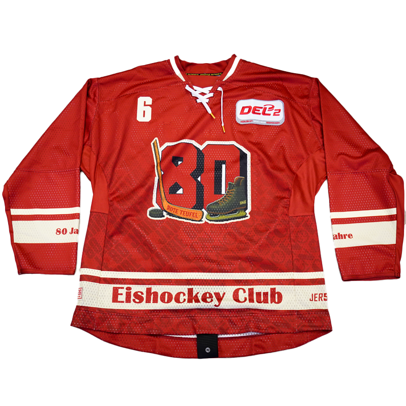 Die Trikots wurden anlässlich des 80-jährigen Vereinsjubiläums des EC Bad Nauheim in der DEL2-Saison 25/26 beim Jubiläumsspiel gegen den ESV Kaufbeuren getragen und können vereinzelt leichte Gebrauchsspuren aufweisen. Jedes Trikot ist ein offizielles Game- bzw. Sondertrikot dieses besonderen Spieltags.