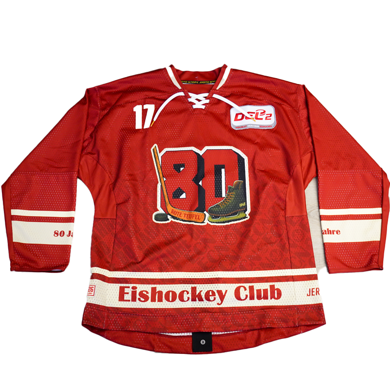 Die Trikots wurden anlässlich des 80-jährigen Vereinsjubiläums des EC Bad Nauheim in der DEL2-Saison 25/26 beim Jubiläumsspiel gegen den ESV Kaufbeuren getragen und können vereinzelt leichte Gebrauchsspuren aufweisen. Jedes Trikot ist ein offizielles Game- bzw. Sondertrikot dieses besonderen Spieltags.