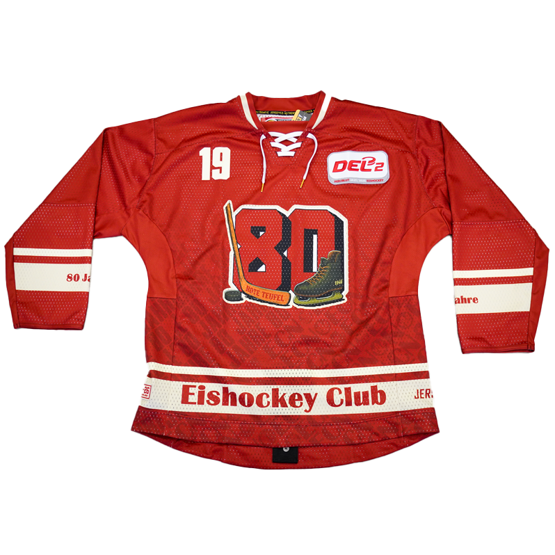 Die Trikots wurden anlässlich des 80-jährigen Vereinsjubiläums des EC Bad Nauheim in der DEL2-Saison 25/26 beim Jubiläumsspiel gegen den ESV Kaufbeuren getragen und können vereinzelt leichte Gebrauchsspuren aufweisen. Jedes Trikot ist ein offizielles Game- bzw. Sondertrikot dieses besonderen Spieltags.