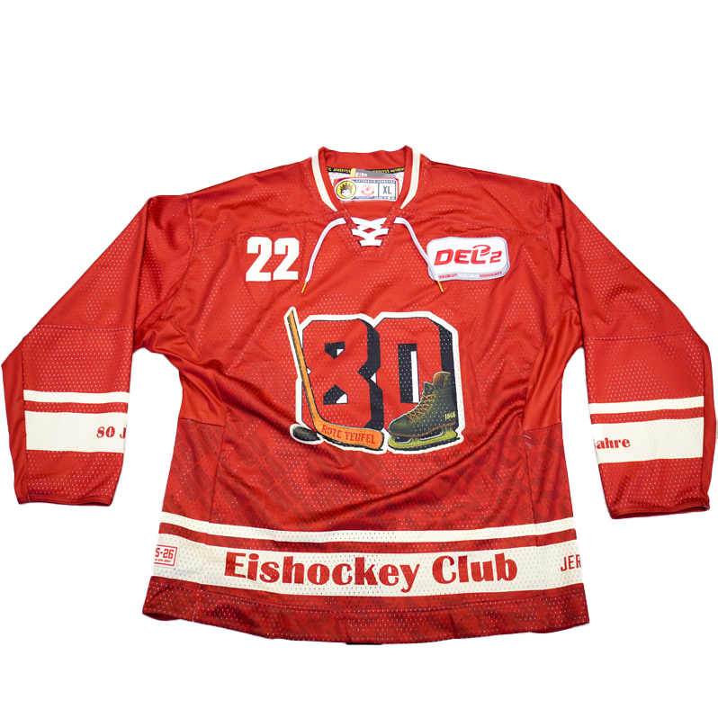 Die Trikots wurden anlässlich des 80-jährigen Vereinsjubiläums des EC Bad Nauheim in der DEL2-Saison 25/26 beim Jubiläumsspiel gegen den ESV Kaufbeuren getragen und können vereinzelt leichte Gebrauchsspuren aufweisen. Jedes Trikot ist ein offizielles Game- bzw. Sondertrikot dieses besonderen Spieltags.
