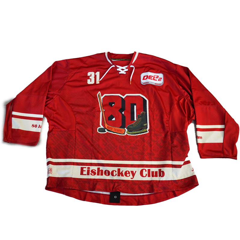Die Trikots wurden anlässlich des 80-jährigen Vereinsjubiläums des EC Bad Nauheim in der DEL2-Saison 25/26 beim Jubiläumsspiel gegen den ESV Kaufbeuren getragen und können vereinzelt leichte Gebrauchsspuren aufweisen. Jedes Trikot ist ein offizielles Game- bzw. Sondertrikot dieses besonderen Spieltags.