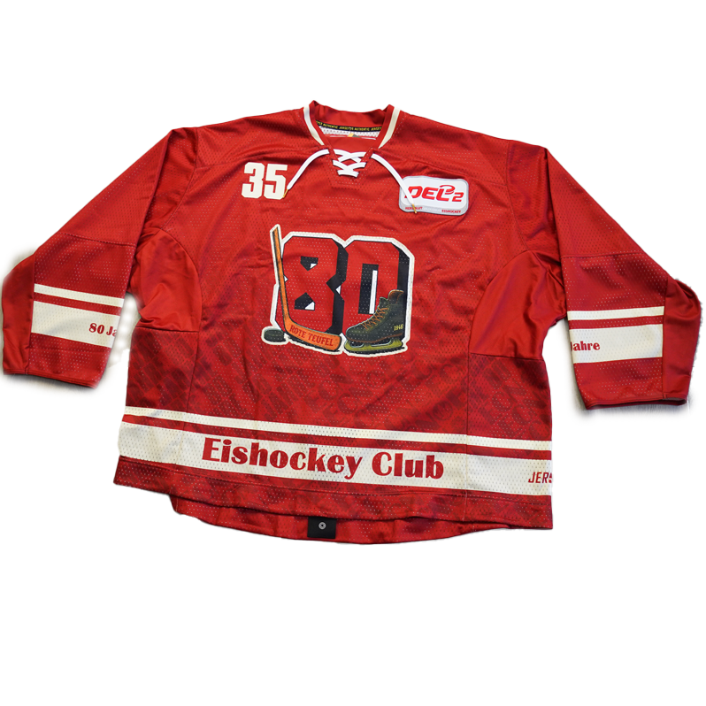Die Trikots wurden anlässlich des 80-jährigen Vereinsjubiläums des EC Bad Nauheim in der DEL2-Saison 25/26 beim Jubiläumsspiel gegen den ESV Kaufbeuren getragen und können vereinzelt leichte Gebrauchsspuren aufweisen. Jedes Trikot ist ein offizielles Game- bzw. Sondertrikot dieses besonderen Spieltags.
