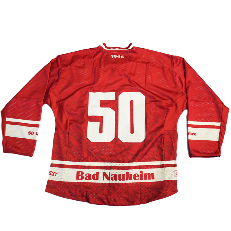Die Trikots wurden anlässlich des 80-jährigen Vereinsjubiläums des EC Bad Nauheim in der DEL2-Saison 25/26 beim Jubiläumsspiel gegen den ESV Kaufbeuren getragen und können vereinzelt leichte Gebrauchsspuren aufweisen. Jedes Trikot ist ein offizielles Game- bzw. Sondertrikot dieses besonderen Spieltags.