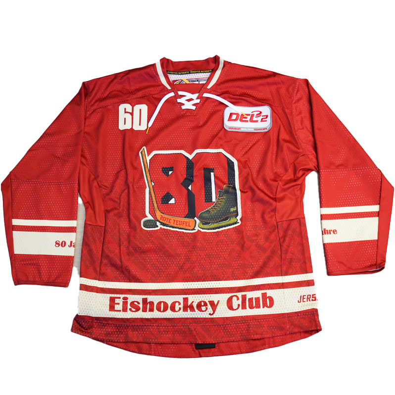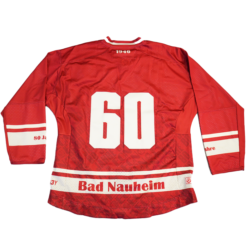 Die Trikots wurden anlässlich des 80-jährigen Vereinsjubiläums des EC Bad Nauheim in der DEL2-Saison 25/26 beim Jubiläumsspiel gegen den ESV Kaufbeuren getragen und können vereinzelt leichte Gebrauchsspuren aufweisen. Jedes Trikot ist ein offizielles Game- bzw. Sondertrikot dieses besonderen Spieltags.